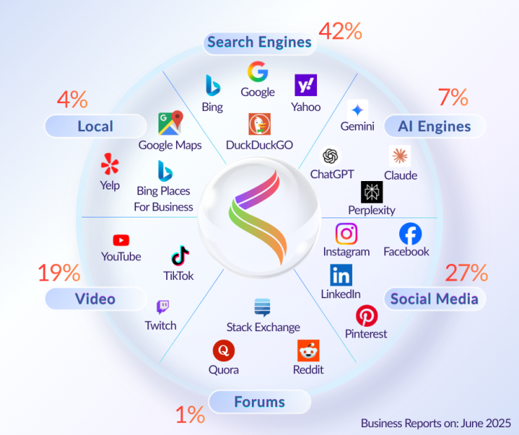 Being “searchable” today means showing up across platforms, not just ranking on Google. Visibility now depends on how well your brand performs on social, video, AI, and local ecosystems.